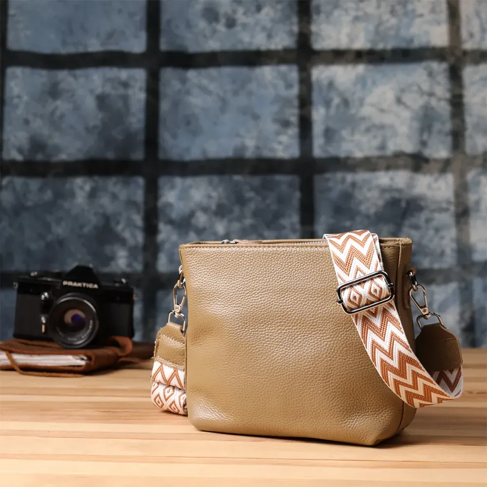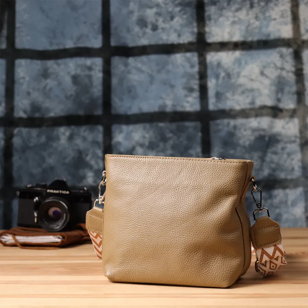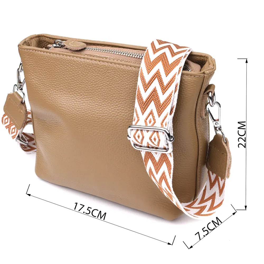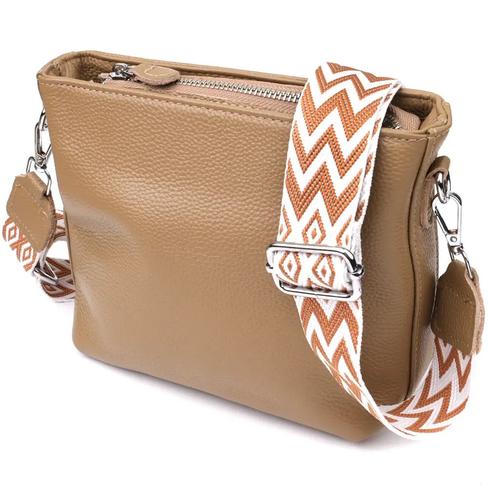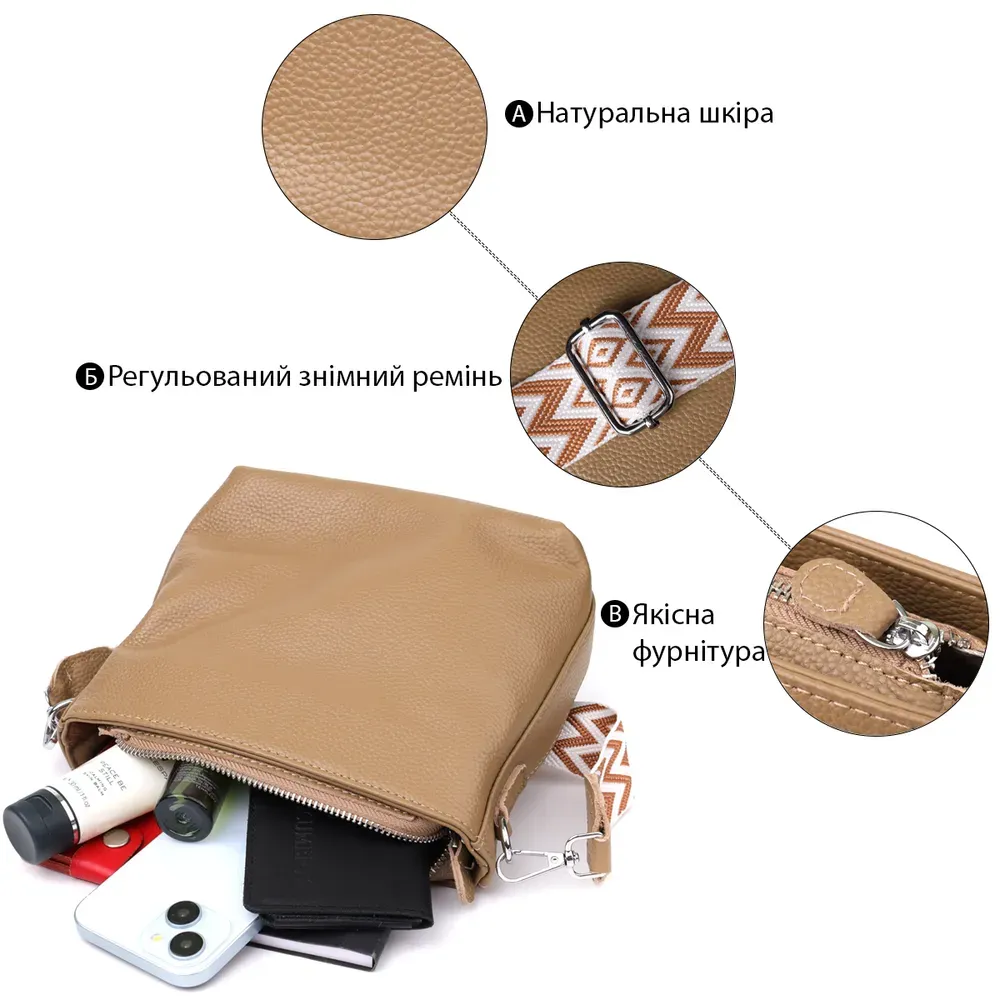 Практична та водночас вишукана, ця бежева шкіряна сумка стане незамінним елементом вашого гардеробу.