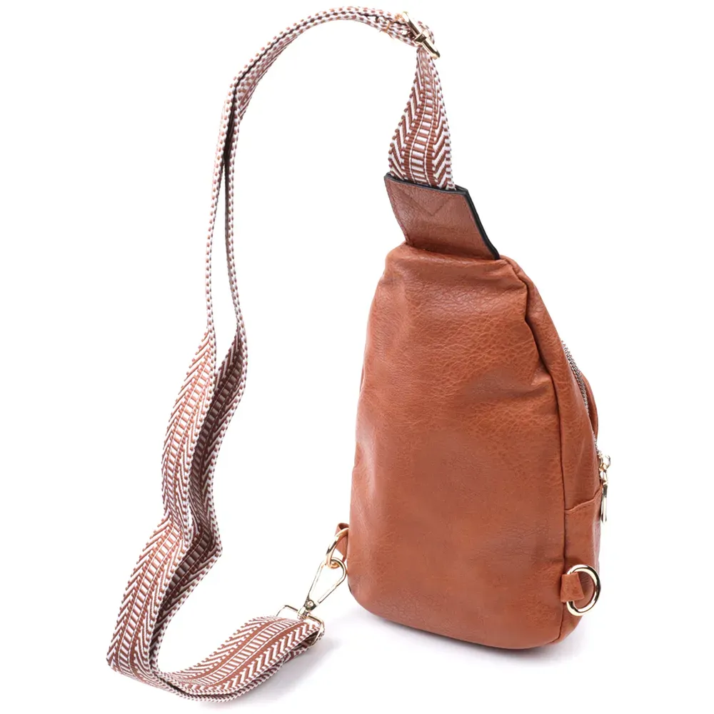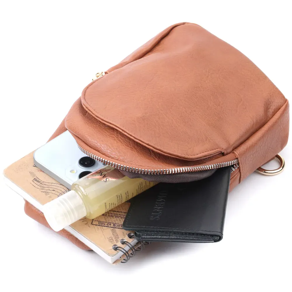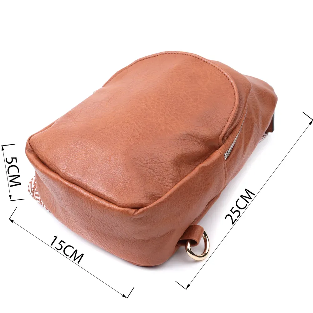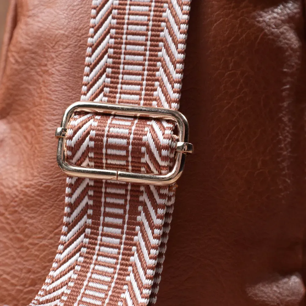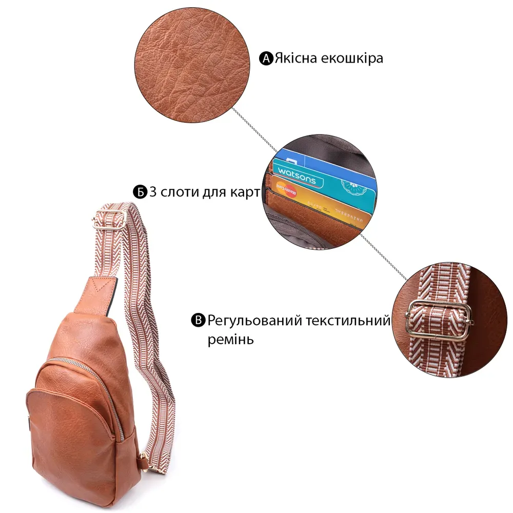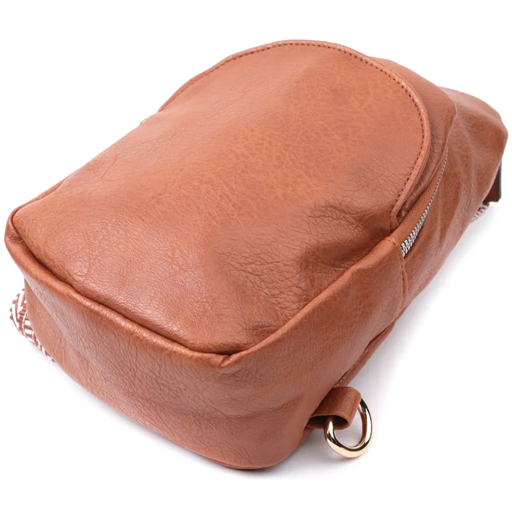 Жіноча сумка через плече з екошкіри з акцентом на текстильну лямку Vintage 22780 Рудий