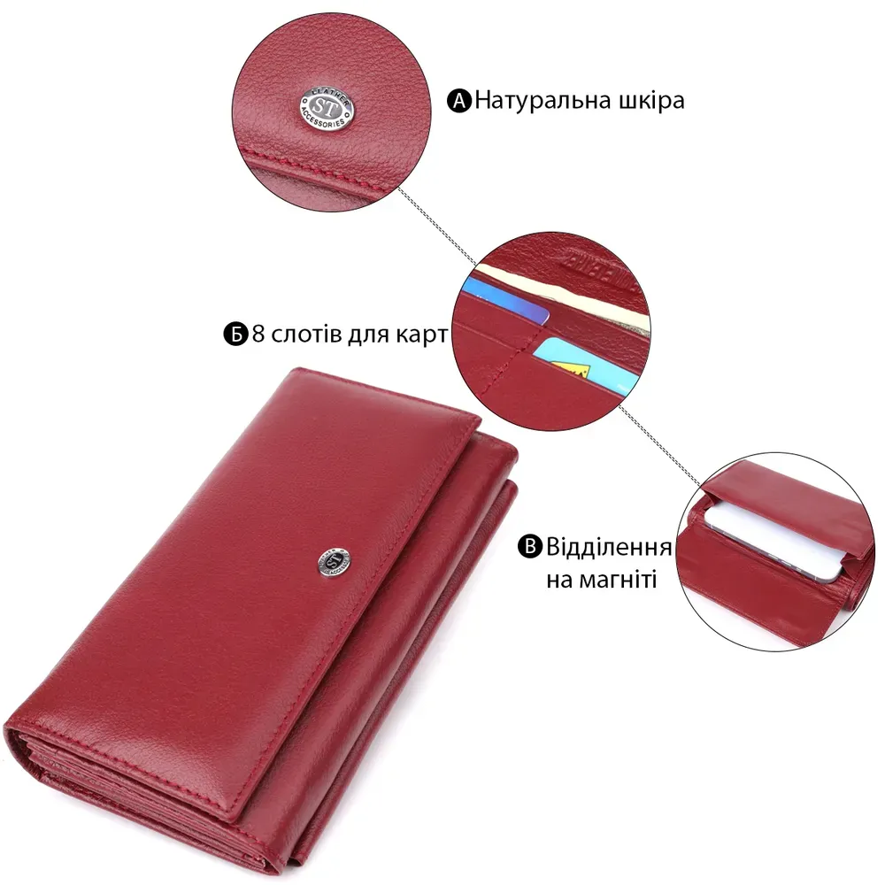 Жіночий гаманець з кишенею для телефону з натуральної шкіри ST Leather 23069 Бордовий