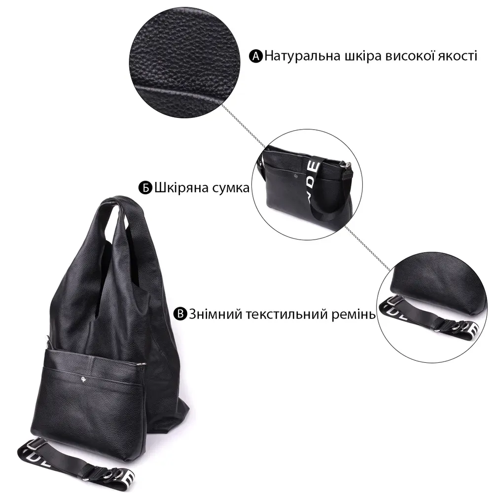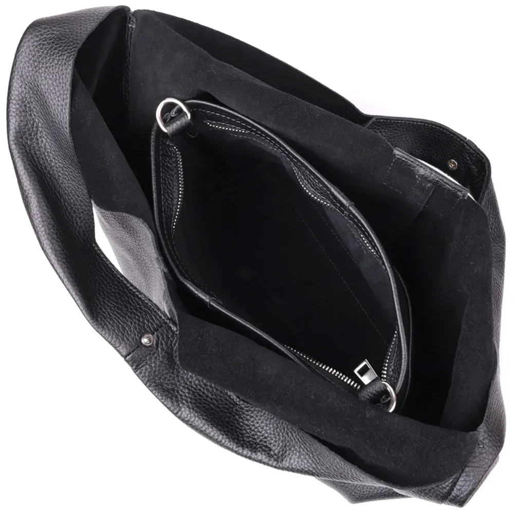 Жіночий шоппер 2 в 1 із натуральної шкіри GRANDE PELLE 22881 Чорний