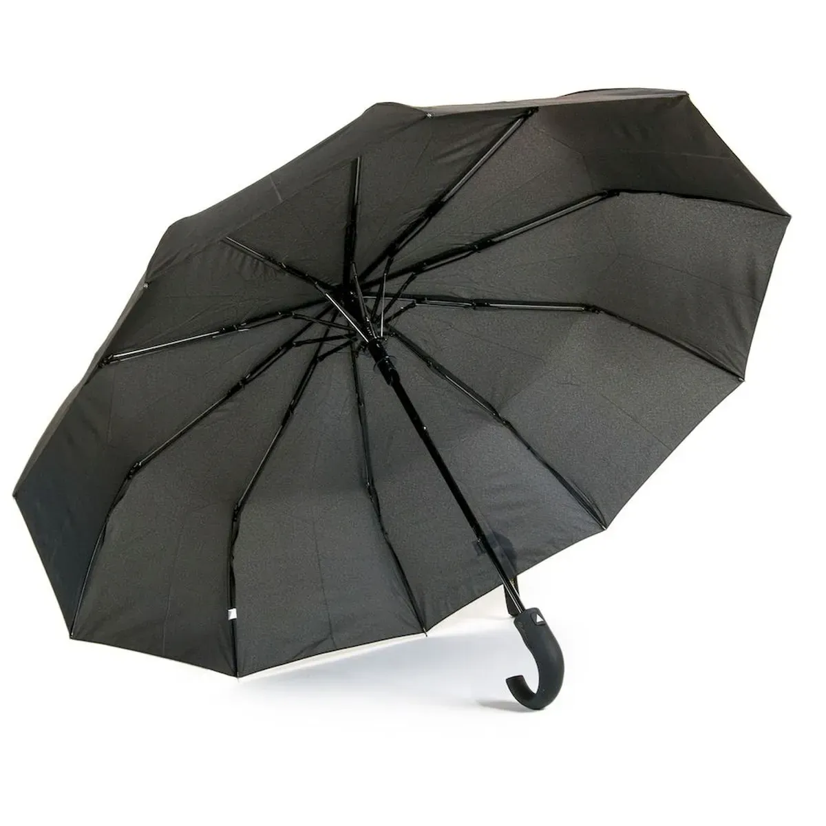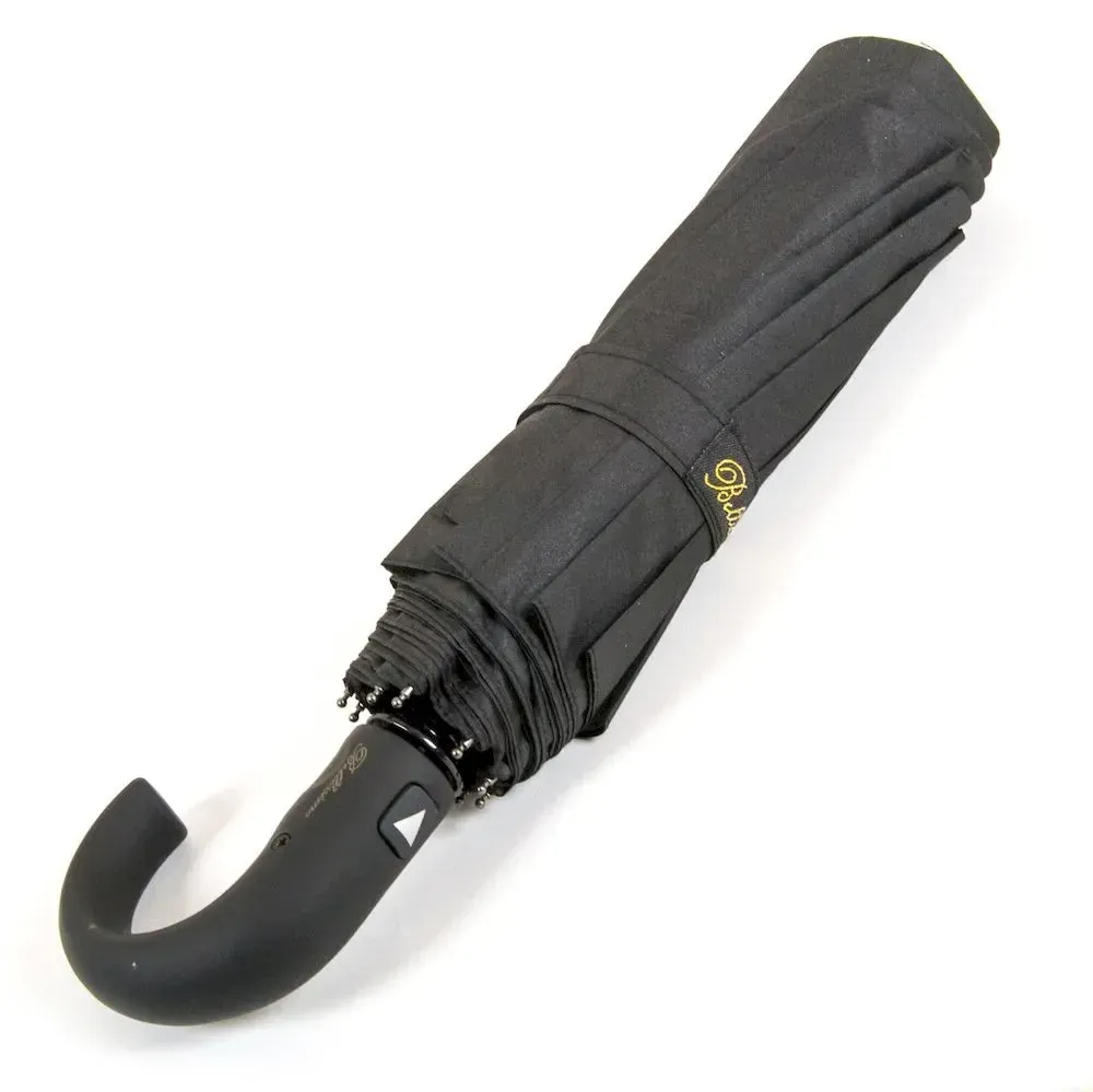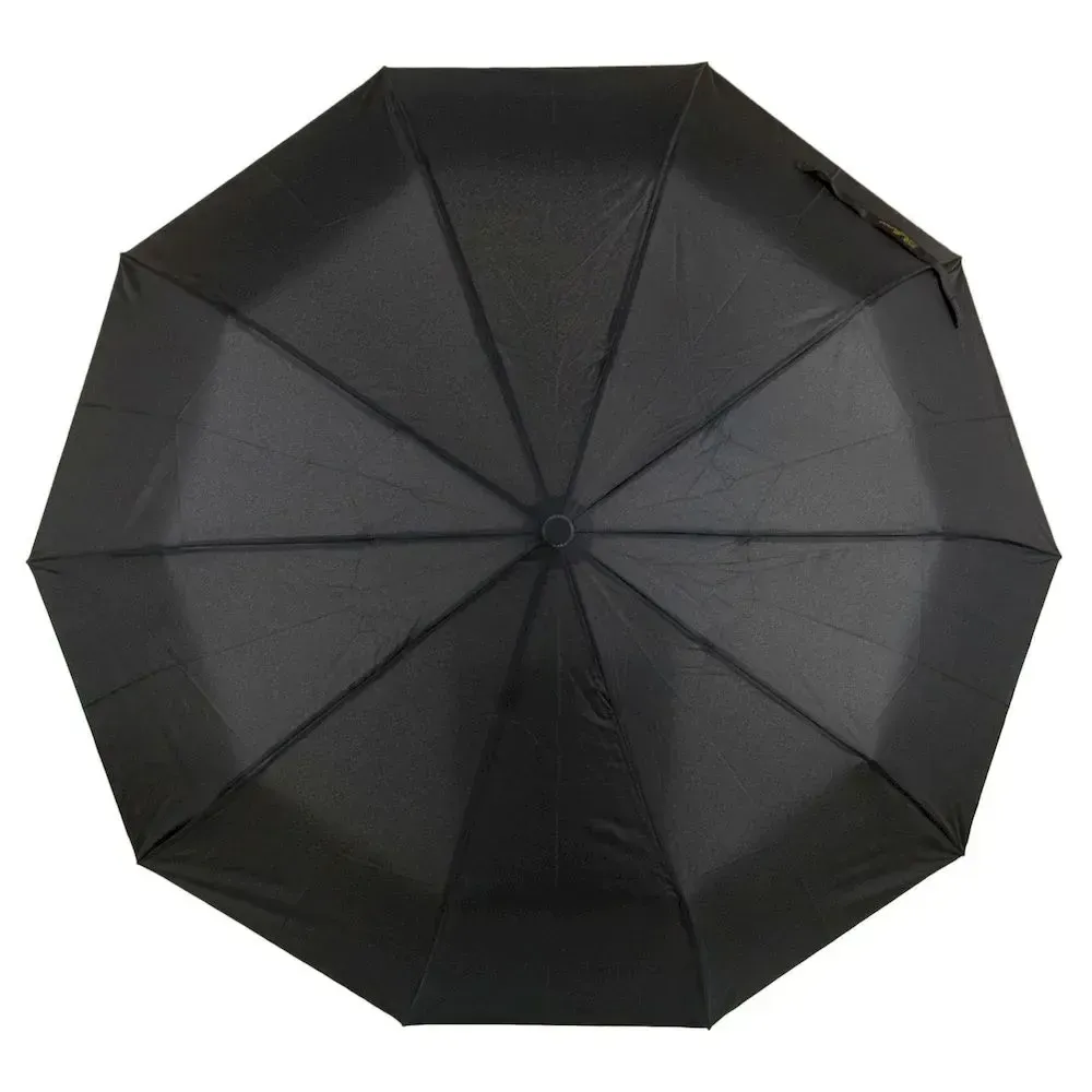 Мужской зонт полуавтомат. Три сложения, ветронепроницаемый купол выполнен из pongee. Вентилируемые спицы с ветрозащитой из метала + стекловолокно (10 шт.). Купол 100 см., стержень 57 см (в сложенном состоянии 35 см).